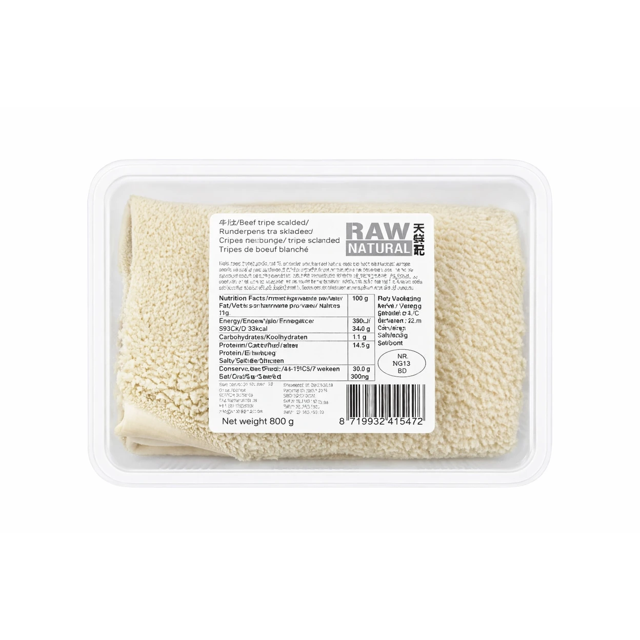 Raw Natural Rundvlees Pens Gescald Honeycomb - 800 g