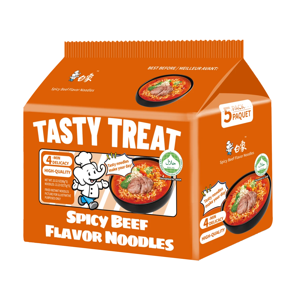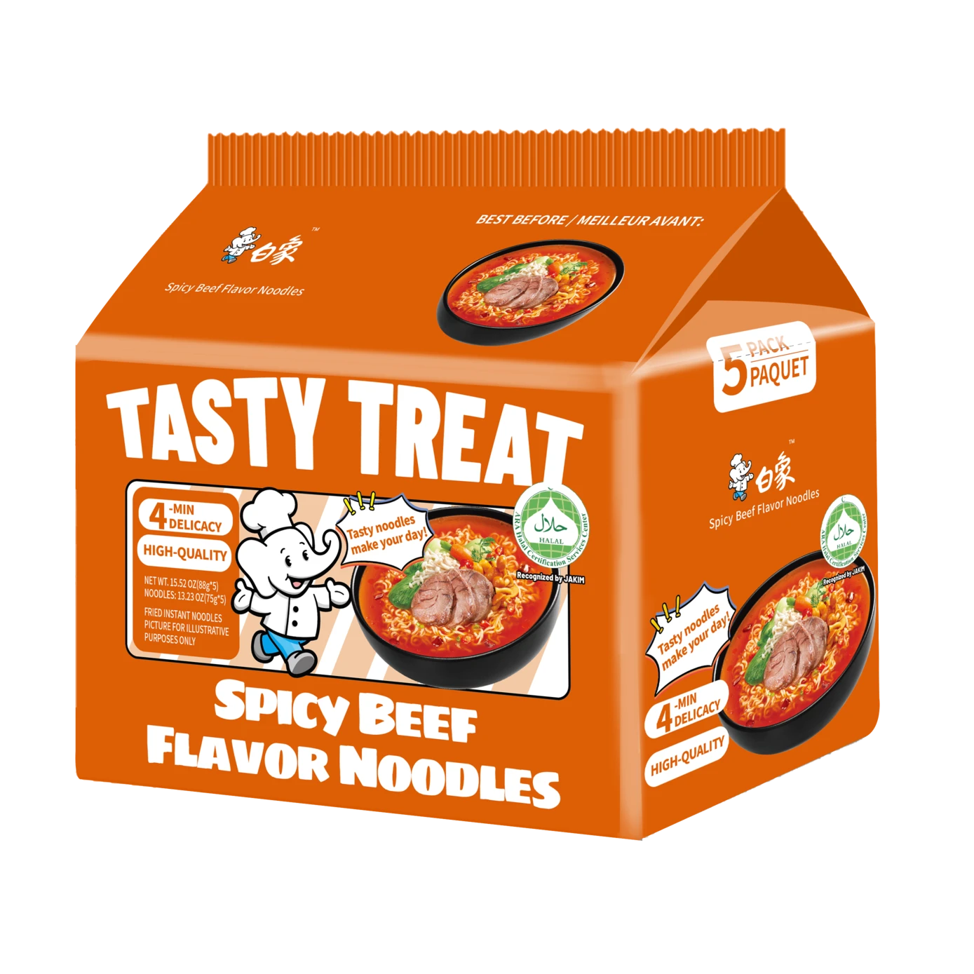 Bai Xiang Halal heerlijke pittige runderbouillon noedels 5*88g (5-verpakking)