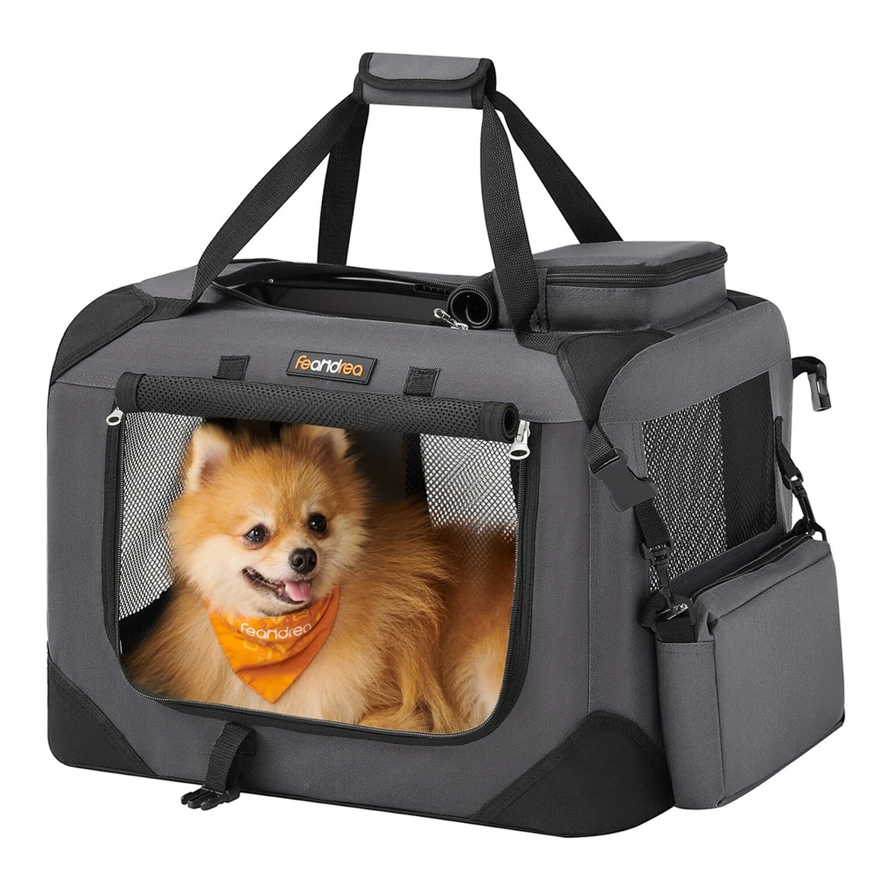 Feandrea PDC50G01 opvouwbare hondentransportbox, S, hondentas, Oxford stof, mesh, ademend, draagbaar, metalen frame, met handvatten, zakken, 50 x 35 x 35 cm, grijs