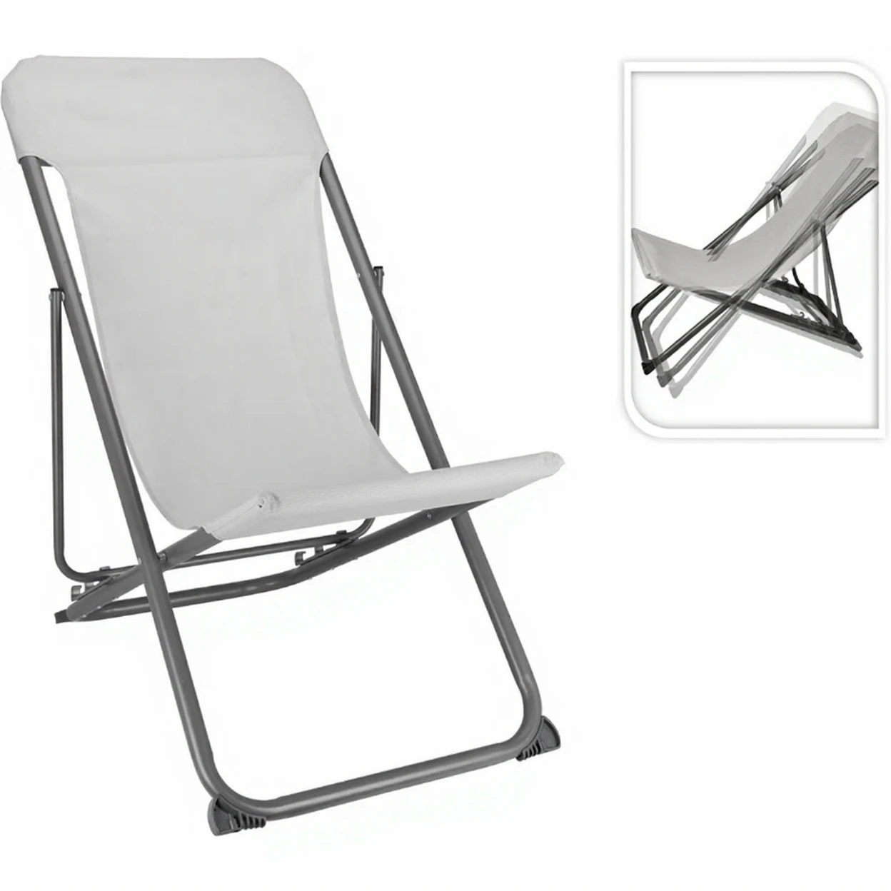 SOUNDLOGIC opvouwbare ligstoel - 92,5 x 84 x 57 cm, beige textilene, mat donkergrijs staal