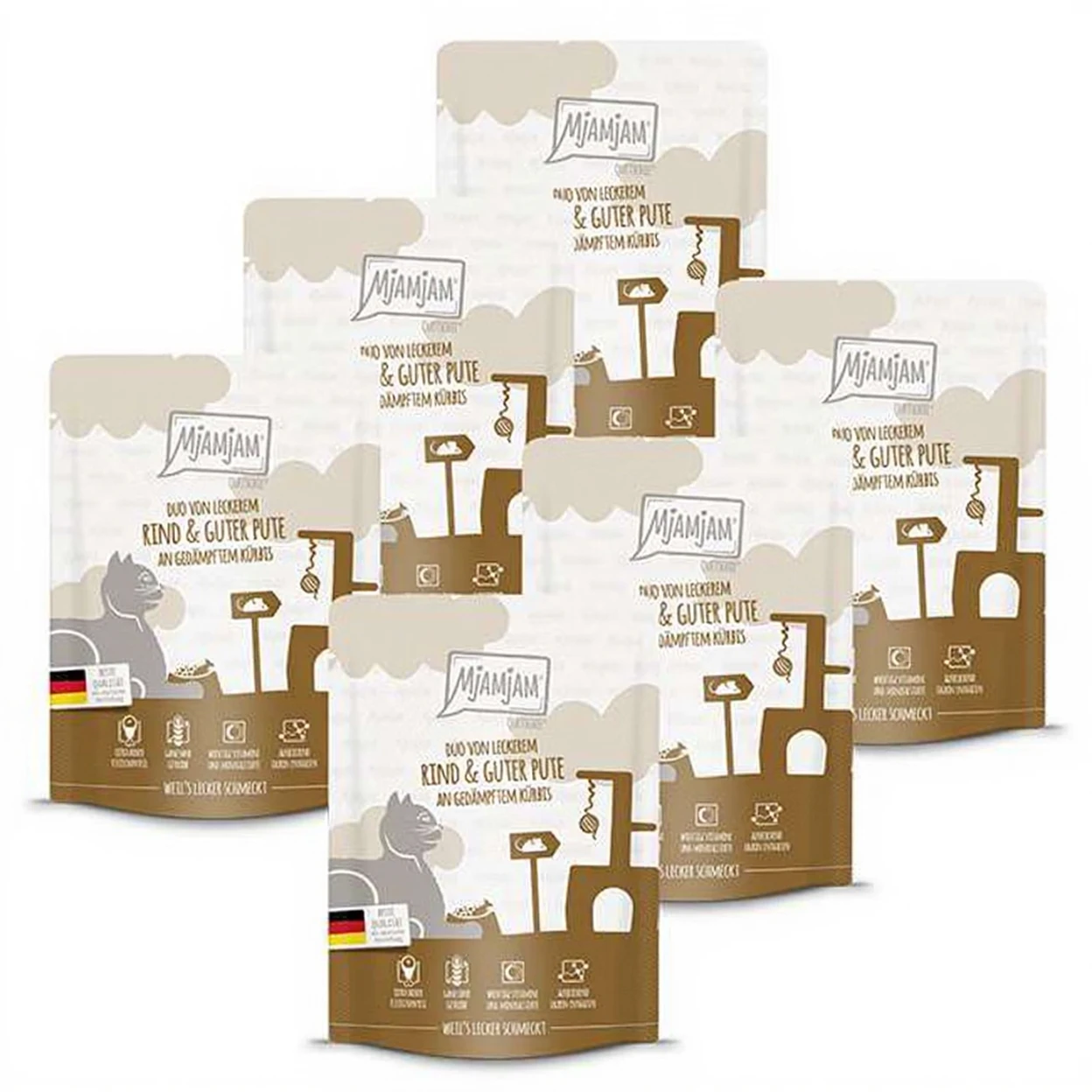 MjAMjAM - Quetschie - DUO van Smakelijk Rundvlees & Malse Kalkoen met Gestoomde Pompoen 300g*6