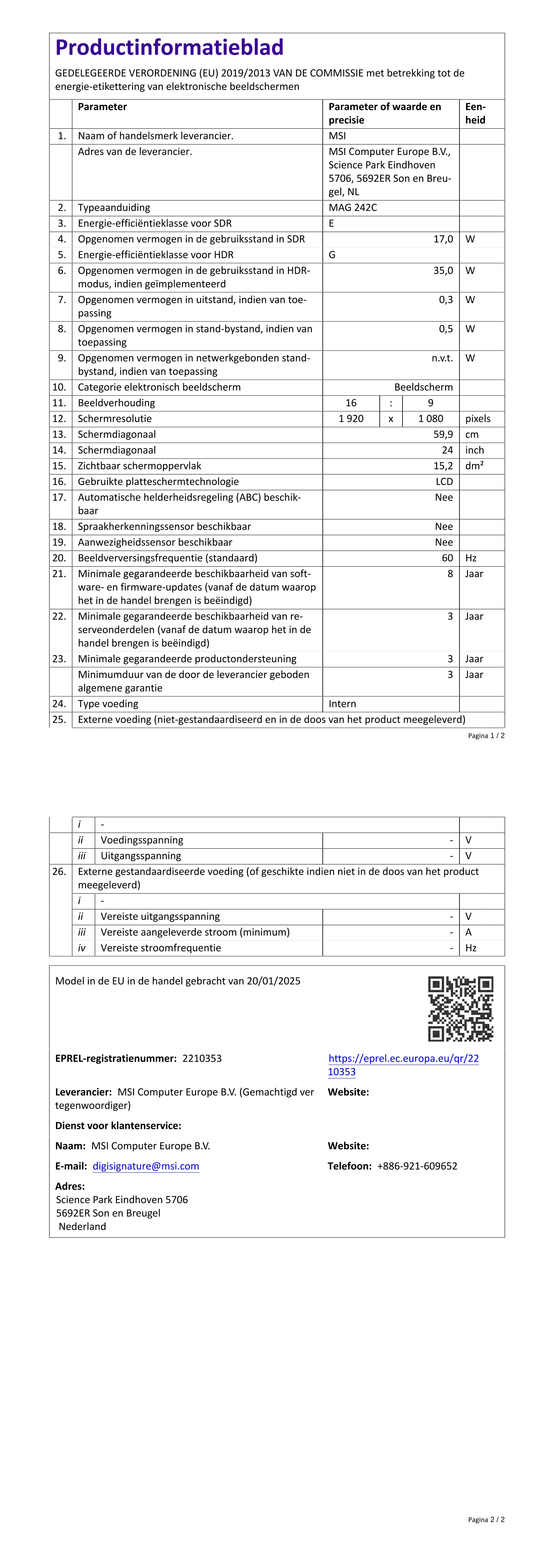 Productinformatieblad€ 109,00