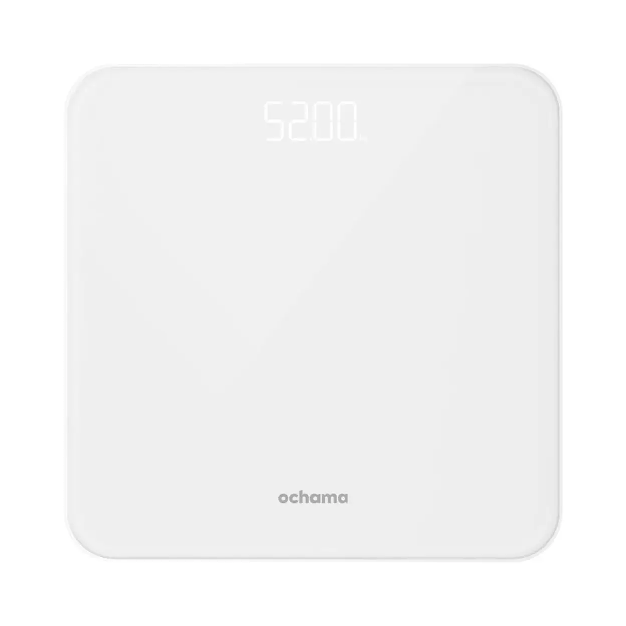 ochama Digitale Personenweegschaal, Nauwkeurige Weegschaal met Gehard Glas, Helder LED-scherm, Meetbereik 5-180kg, Inclusief 2x AAA Batterijen, Compact Design 260x260mm