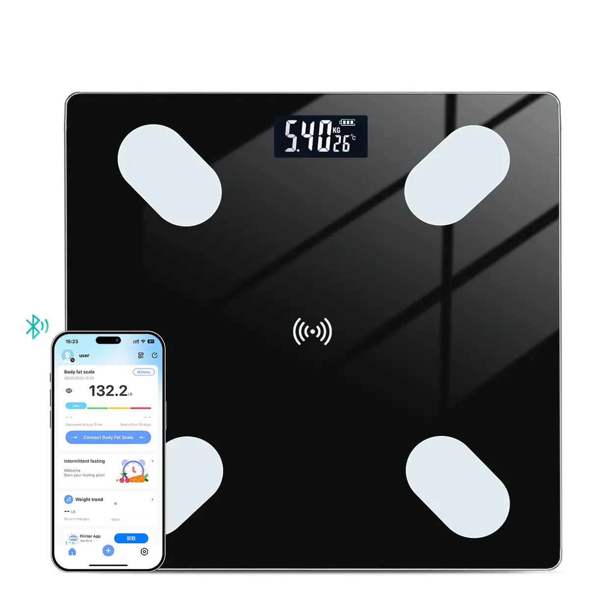 Sparoma AD-26 Zwarte Digitale Badkamerweegschaal – Werkt op Batterijen (2×AAA), 180kg Capaciteit, 0.05kg Nauwkeurigheid, 4mm Gehard Glas, LCD-scherm, Voor Thuisgebruik